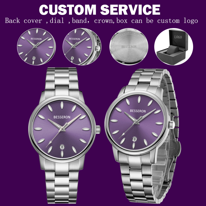 FAQ: 1. What services can we provide? Besseron Watch Factory Accepted Delivery Terms: FOB, EXW; Accepted Payment Currency: USD, EUR, HKD, CNY; Accepted Payment Type: T/T, L/C, PayPal; Language Spoken: English, Chinese. 2. Can We Put My Own Logo On the Watch? A: Yes, we can Put Your Logo On Dial, Strap, Buckle, and Back Case. 3. How many quantities are able to customize my logo? Our stainless steel watch models' minimum order quantity is 50-100 pieces per design. We can customize your logo. 4. Who are we? We are a professional manufacturer of Watches with more than 16 years' experience. Besseron watch manufacturer, will help your watch brand grow together.