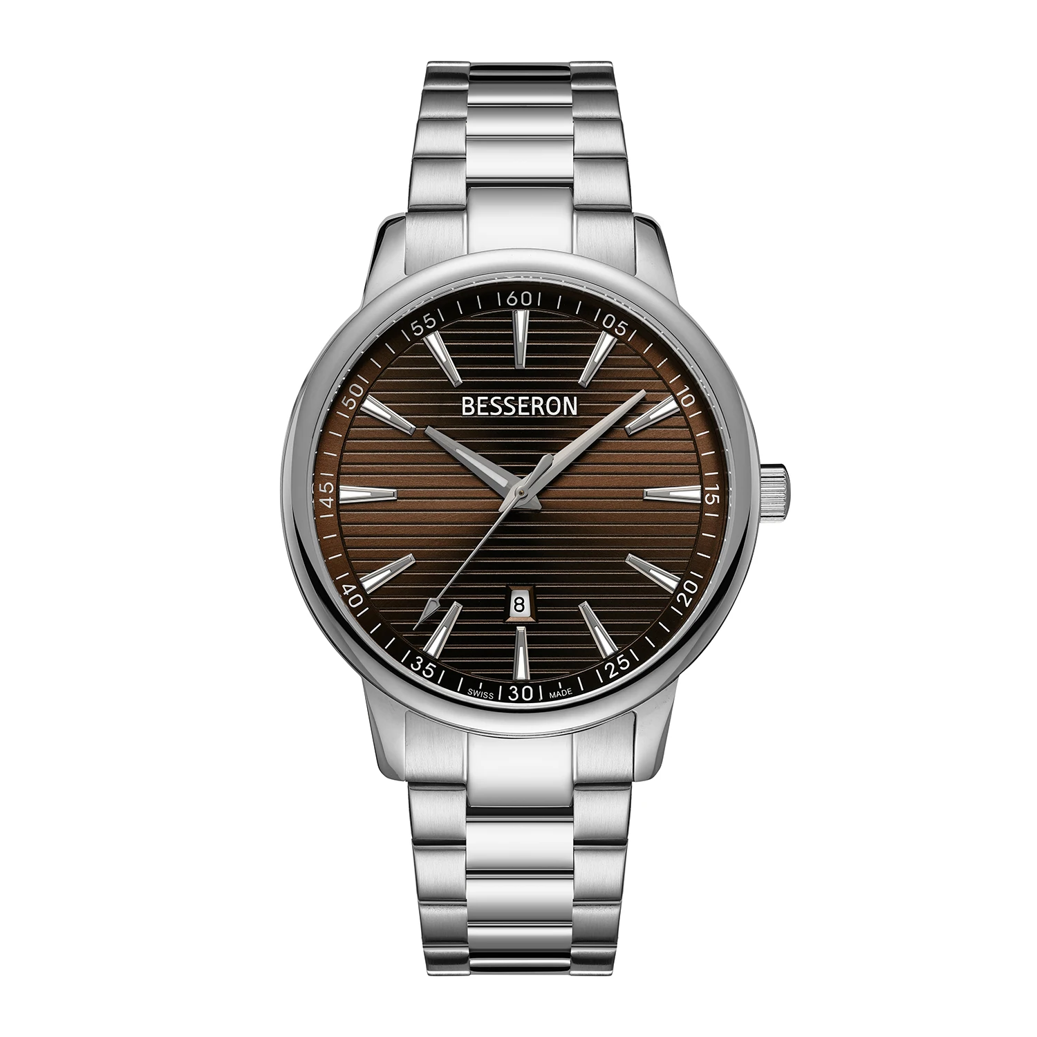 Discover the Besseron 42mm stainless steel watch for men. Featuring precise Japanese quartz movement & a genuine leather band, this high-end, business-style timepiece combines sophisticated design with reliable performance. Shop now.
