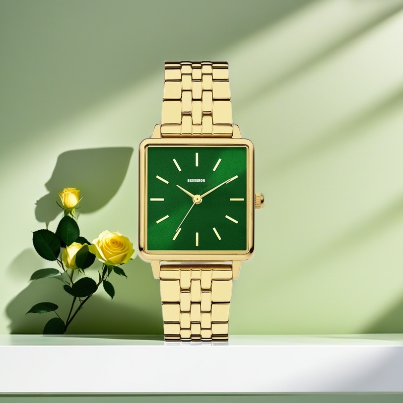 Besseron GF-18083 Square Dial Women's Watches- Luxury Square Watches for Women with Sunray Dial - Japan Quartz Movement The Besseron GF-18083 is among thebest square watches for women, combiningluxury square watches elegance with precision. Featuring a 316L stainless steel case, sunray dial, and Japan quartz movement, thissquare bezel watch is perfect for daily wear. Water-resistant (3ATM) and scratch-resistant (Hardlex glass), it’s ideal for fashion-forward women. Custom branding is available for bulk orders. "A watch should be as timeless as the moments it captures."- Sophia, Fashion Stylist & Watch Enthusiast Inspired by classic Art Deco designs, the Besseron GF-18083 redefines luxury square watches with its sunray green dial and sleek square bezel. Whether you’re shopping for square watches Amazon or square watches Australia, this timepiece stands out for its blend of vintage charm and modern reliability. Besseron watch factory can also make a diamond dial design square watch for you.