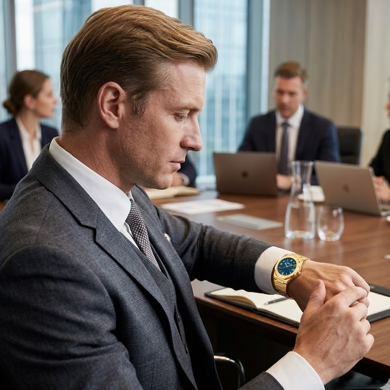 Business & Formal Events: Perfectly complements suits and dress shirts. Its gold accents and deep blue dial add a touch of sophisticated personality to a professional look, ideal for meetings and formal gatherings.