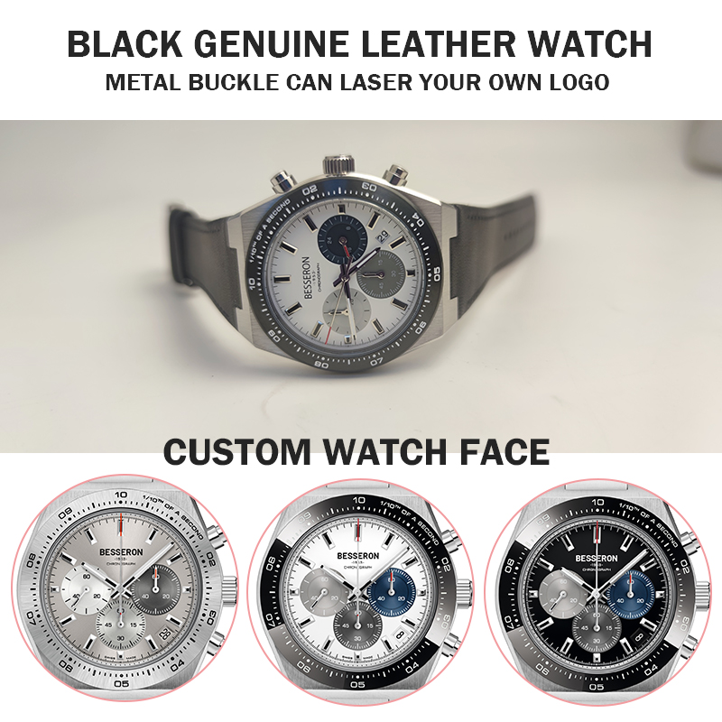 New Male Vd53 Japan Movement Chronograph Watch Minimalist For Him Replacement Black Quartz Leather Watch