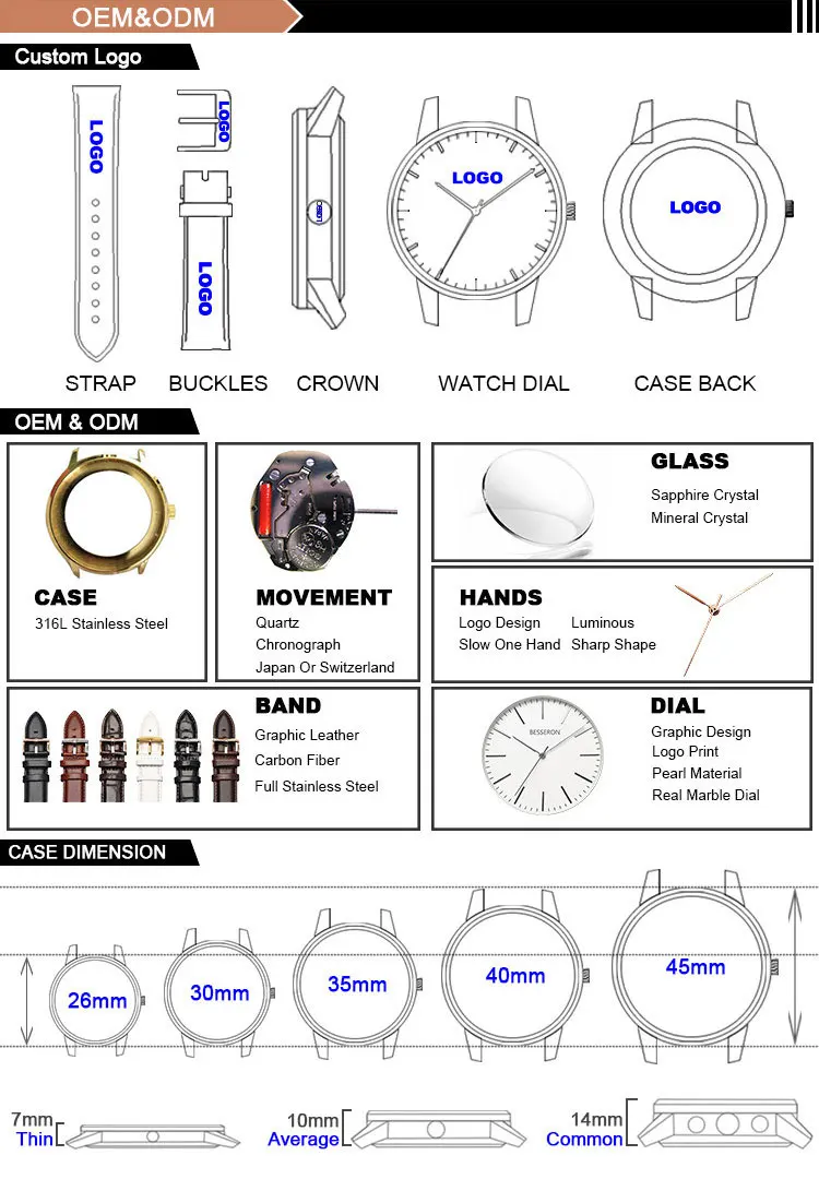 Contact Besseron today to discuss your watch collection needs. Our expertise with analog display watch design and manufacturing, combined with our comprehensive quality assurance processes and market insights, ensures your timepieces will deliver exceptional customer satisfaction and commercial success. Discover why brands worldwide trust us as their manufacturing partner for collections that successfully balance style, functionality, and value. Let us help you transform your watch concepts into beautifully crafted timepieces that become essential companions in your customers' daily lives.