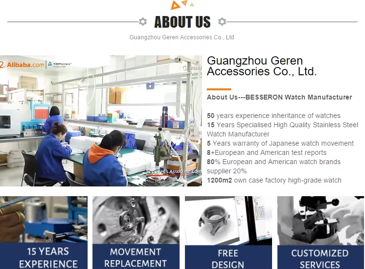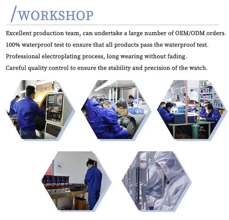 Guangzhou Watch Factory is a leading OEM & ODM watch manufacturer, specializing in the design, production, and customization of high-quality timepieces. We have our own affiliated factory, according to I S O 9 0 0 1 system standard production. We have a professional and dedicated design management team, from product design, and mold making to finished product production, with more than one hundred processes and processes. Specializing in the production of 3 1 6 L food grade stainless steel watches, with high-quality waterproof function. In addition, we have obtained several certificates such as C E, and RoSH. With years of experience in the industry, we provide innovative and stylish watch solutions tailored to brands, retailers, and distributors worldwide. Our state-of-the-art production facilities and skilled craftsmanship ensure that every watch meets international quality standards.