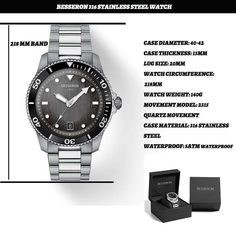 For the quartz dive watch, you can choose the Chinese, Japanese, or Swiss movements.t