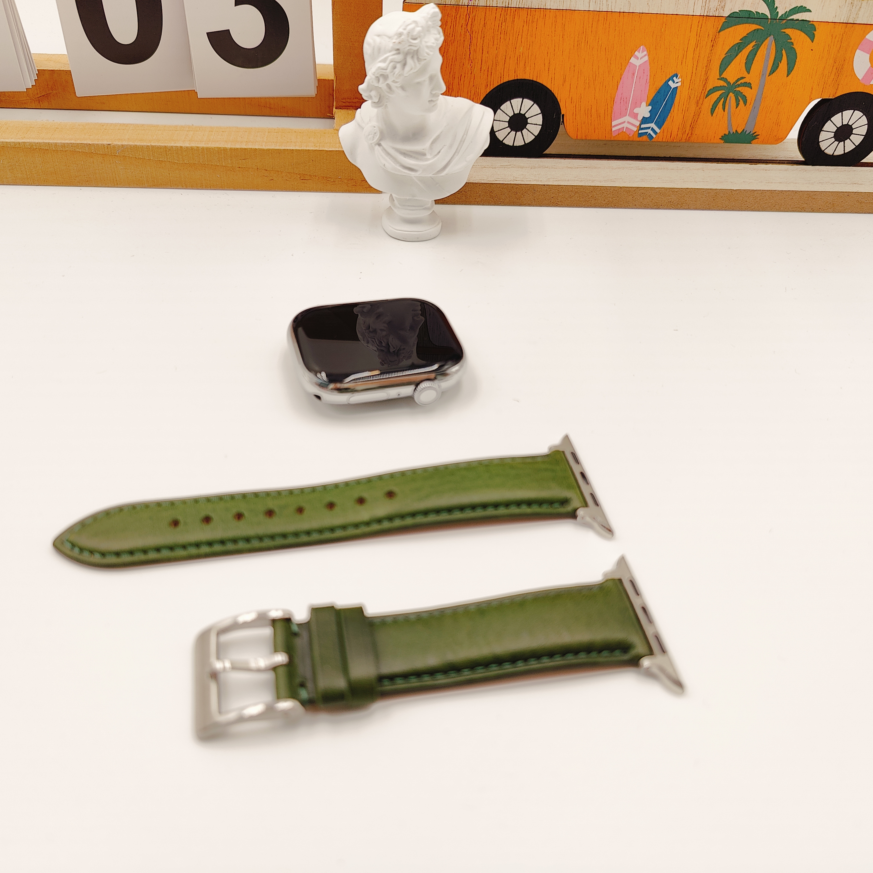 Watch Strap Manufacturers Customize Your Logo Green Leather Watch Bands For Smart Watches